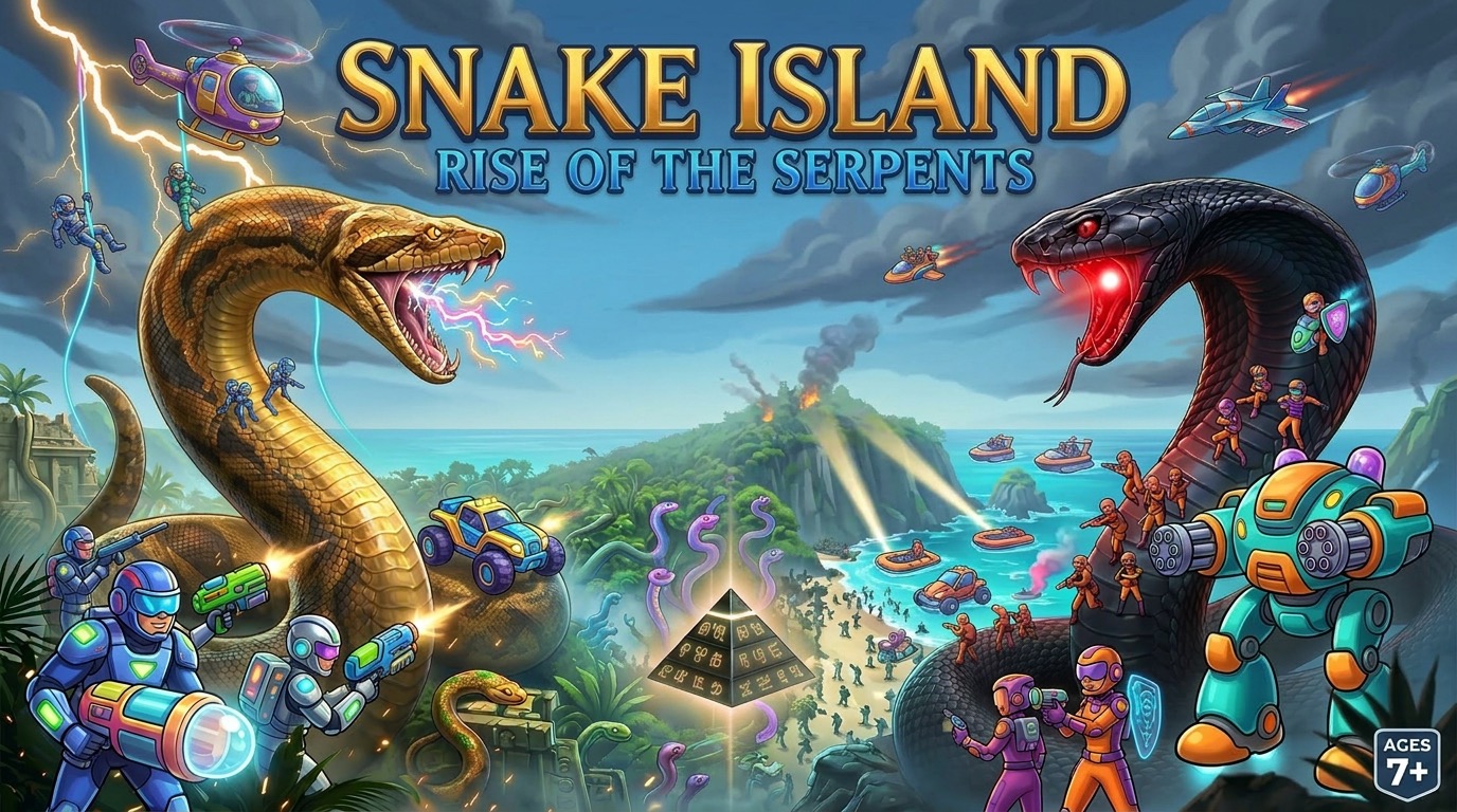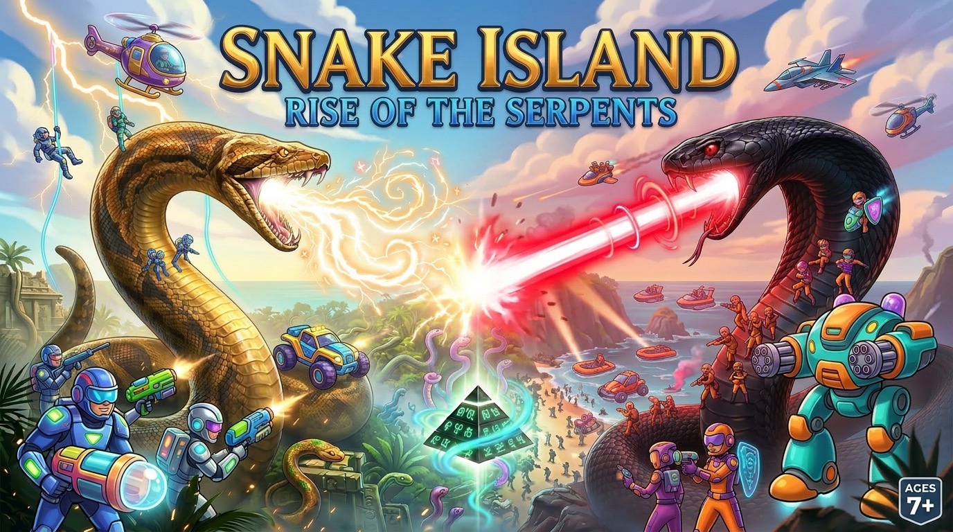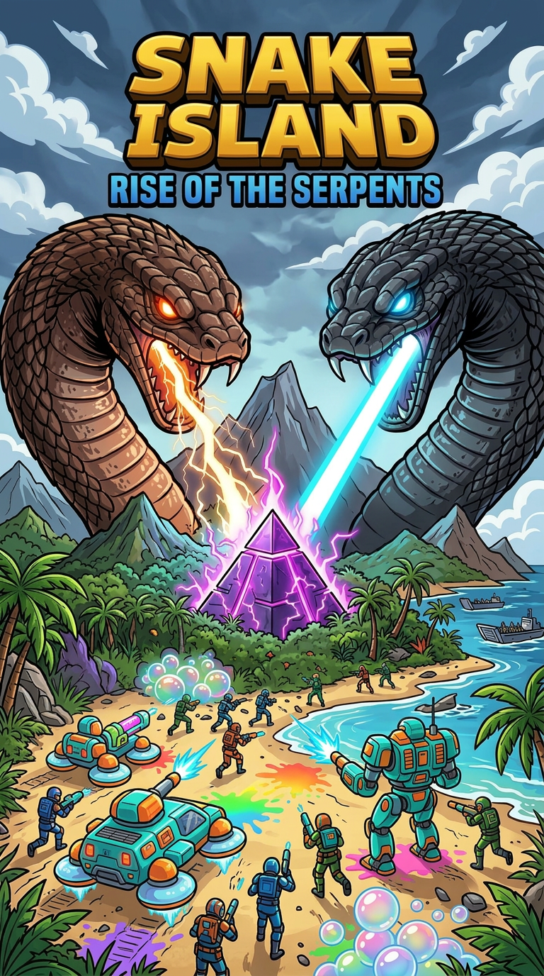 You are a snake on Ilha da Queimada Grande — the real Snake Island off Brazil. Explore the island: its rainforest, cliffs, lighthouse, and beaches. Defeat all human invaders and feed their souls into the Shadow Pyramid!
