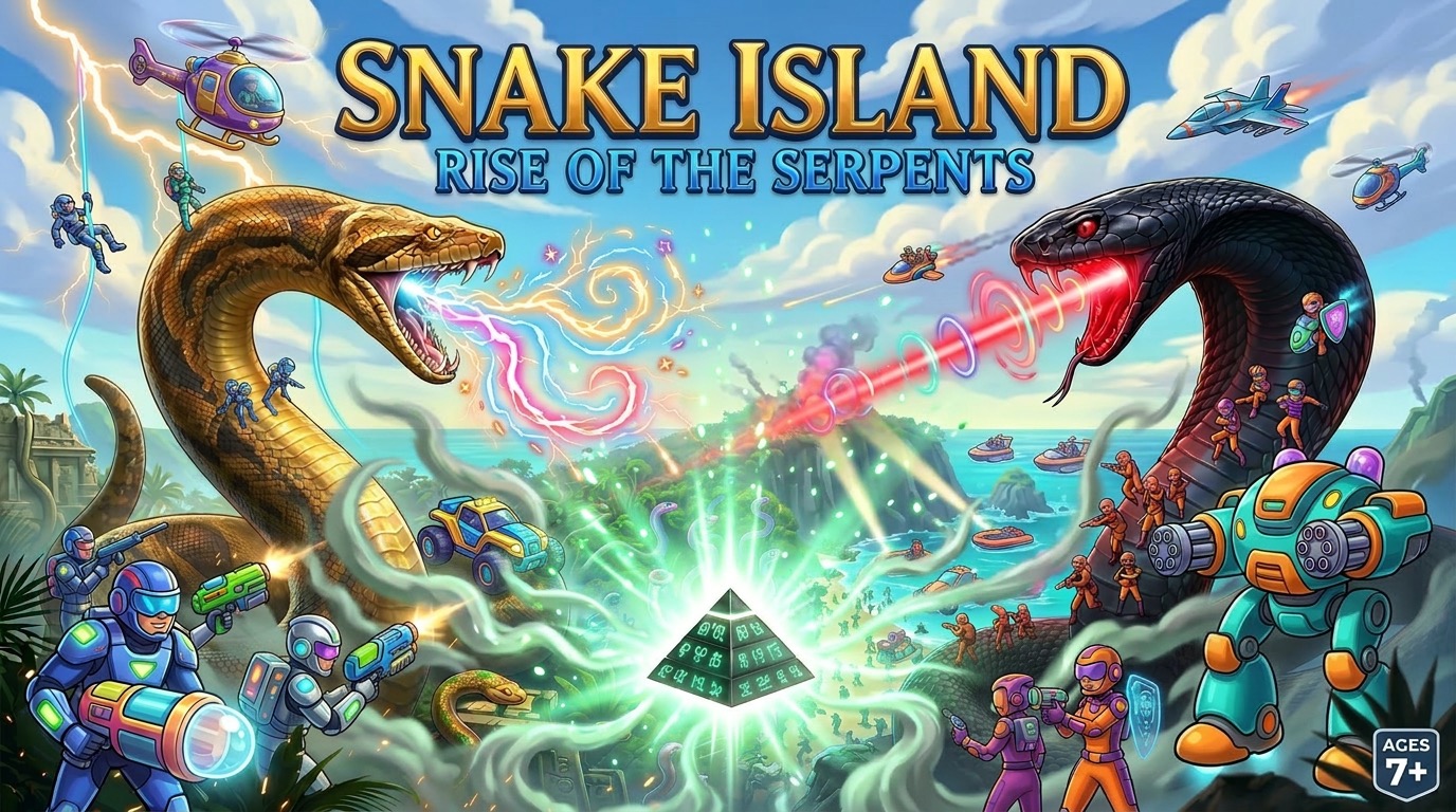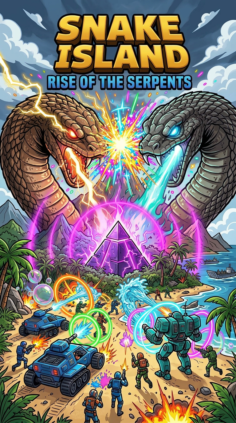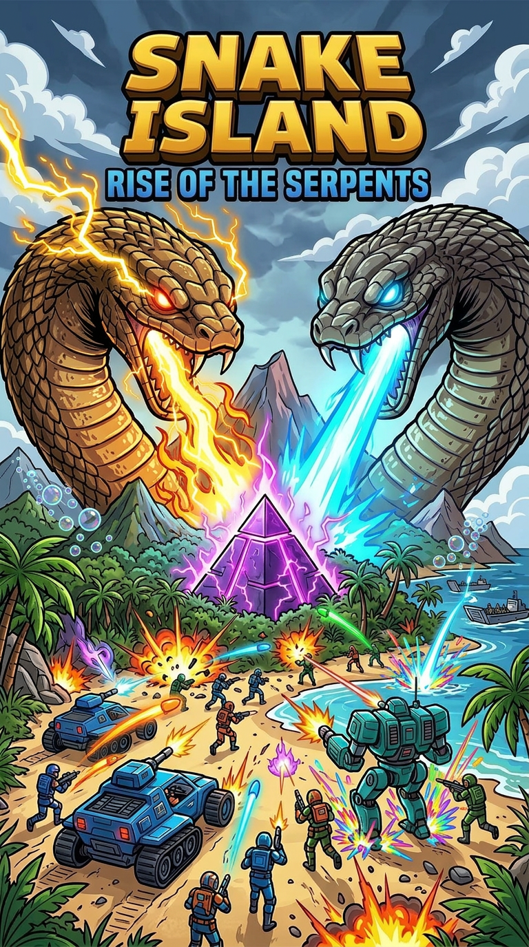 You are a snake on Ilha da Queimada Grande — the real Snake Island off Brazil. Explore the island: its rainforest, cliffs, lighthouse, and beaches. Defeat all human invaders and feed their souls into the Shadow Pyramid!
